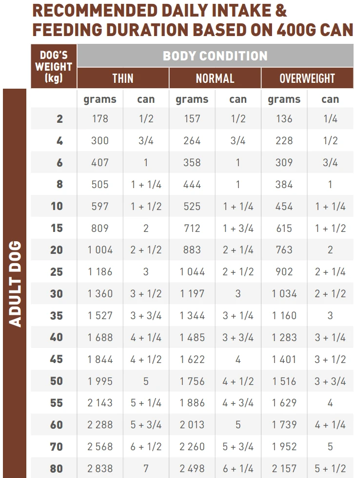 - Teneur élevée en énergie: grâce à la densité énergétique élevée, les besoins énergétiques du chien peuvent être entièrement satisfaits avec une petite portion.