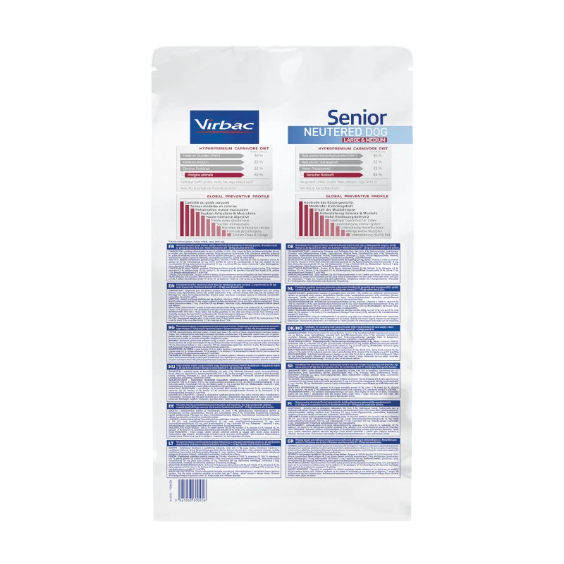 Virbac Veterinary Hpm Senior Neutered Large & Medium Pour Chien 7kg